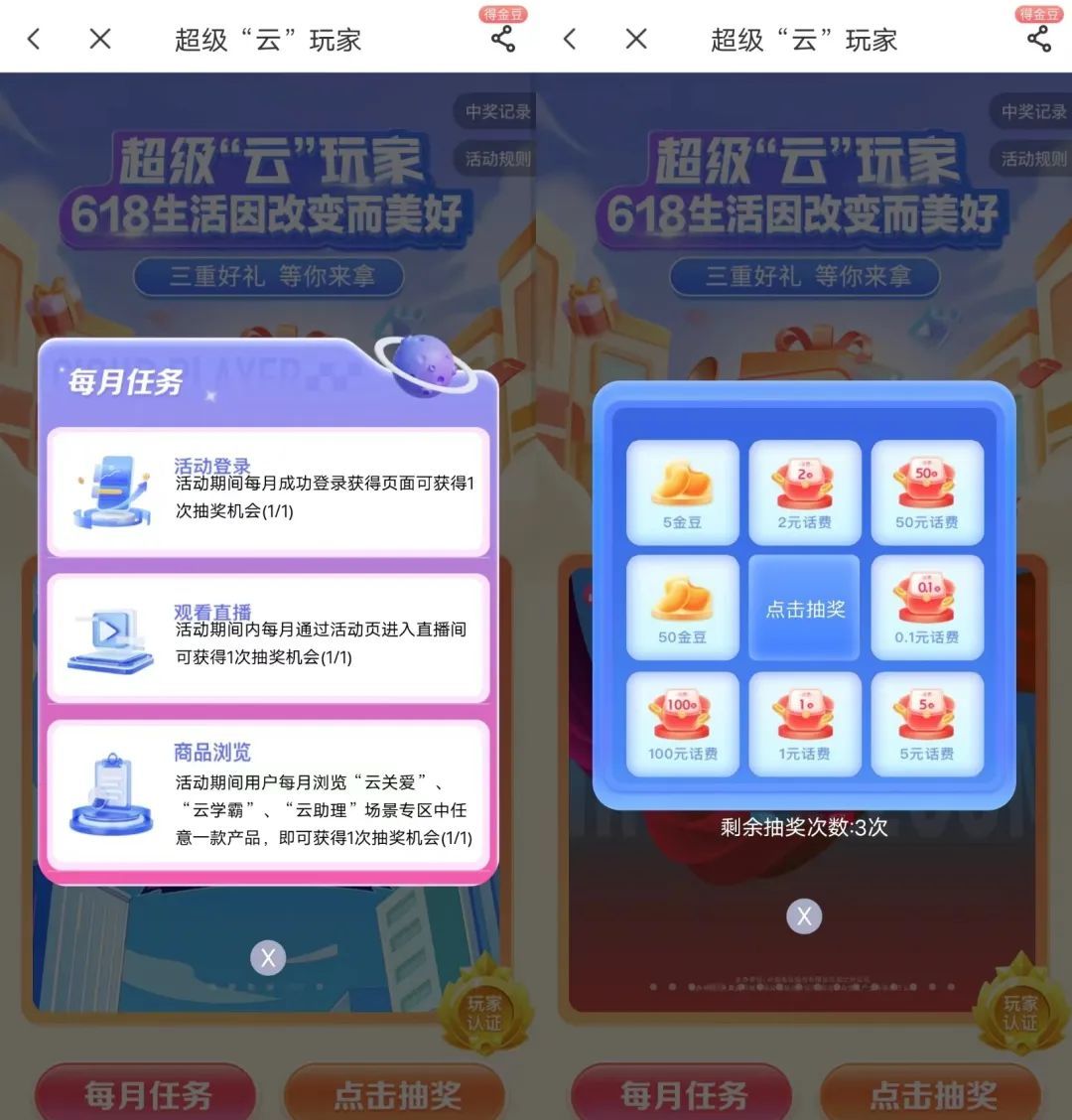 在 APP 内搜索超级”云“玩家,每月完成任务都有抽奖的机会。