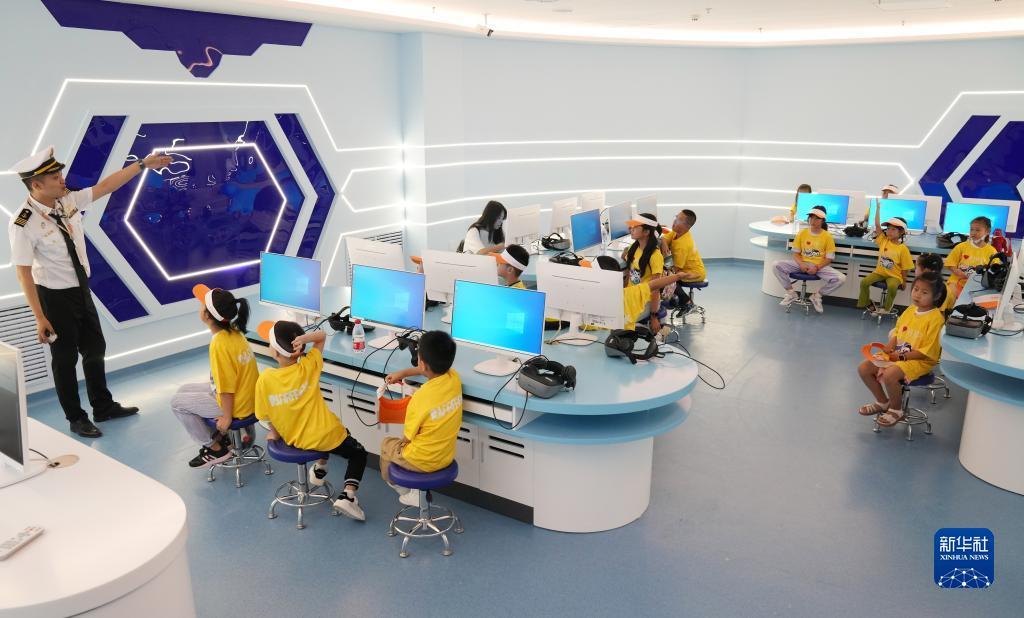 7月8日,在“淘学企鹅馆”的VR教室,工作人员在给孩子们进行科普授课。