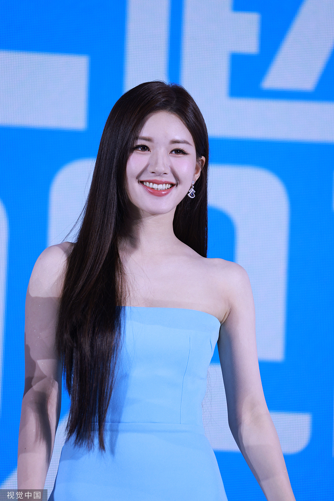 赵露思身着蓝色长裙出席见面会 秀纤腰温婉可人