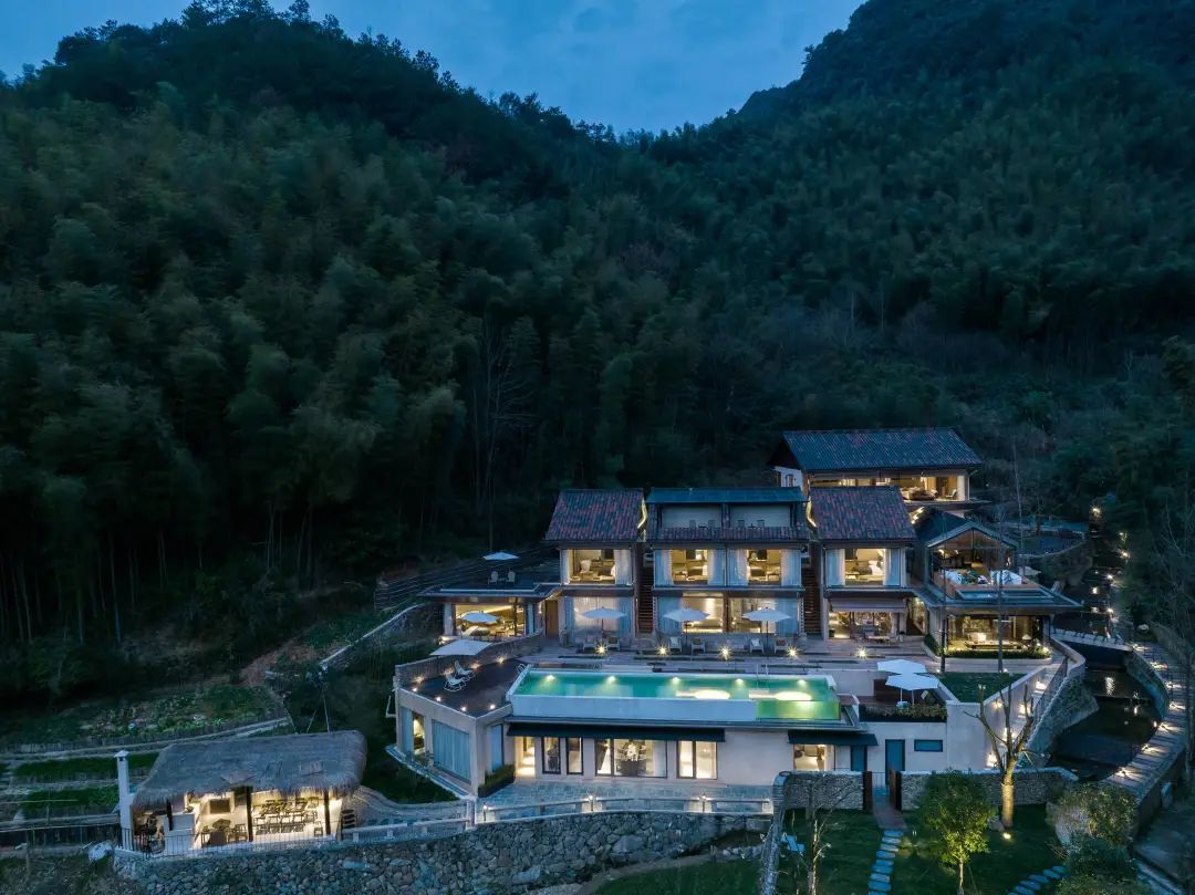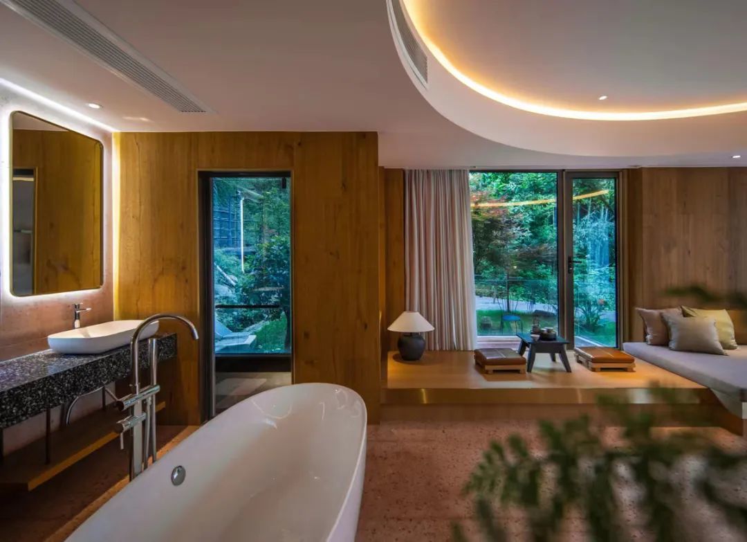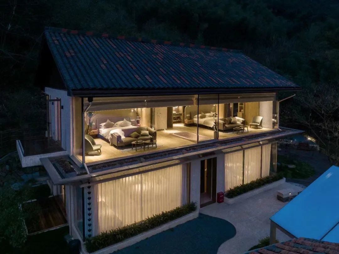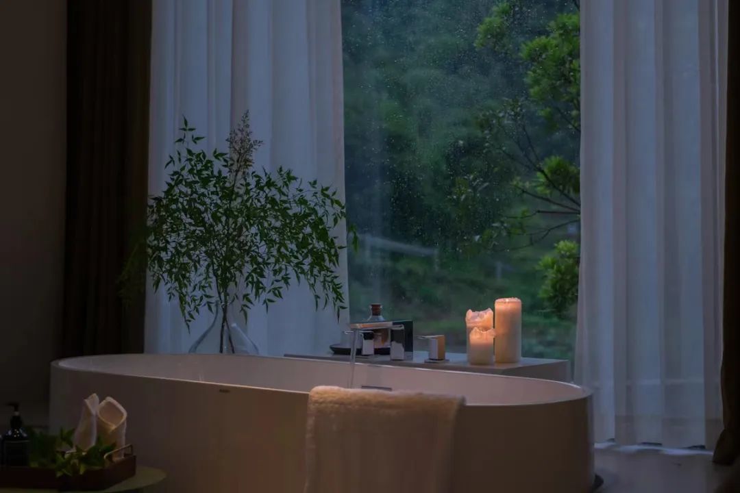 共11间观景客房,一房一景收藏了四季风光,整面墙的全景落地窗,随时欣赏窗外的山野美景。撒点儿玫瑰花瓣,泡个浪漫的山泉浴。在阳台,可看远山青黛,云雾缥缈。躺在房间里,与竹林簌簌声相伴入梦。