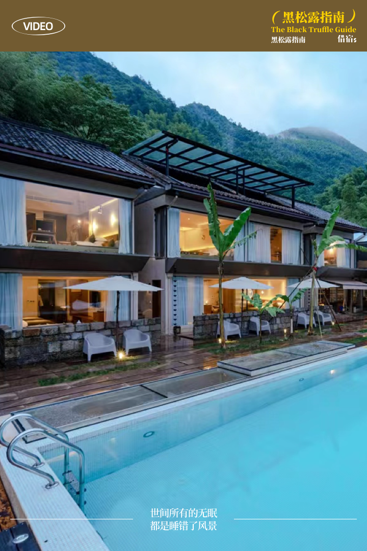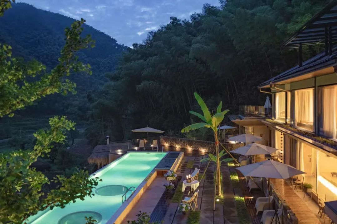 山谷悠悠,庭院深深。沿竹径而上,叩开篱笆小门,便能看见依山势而建的两栋小屋。前一栋正对星空泳池,后一栋被竹野绿林环绕。