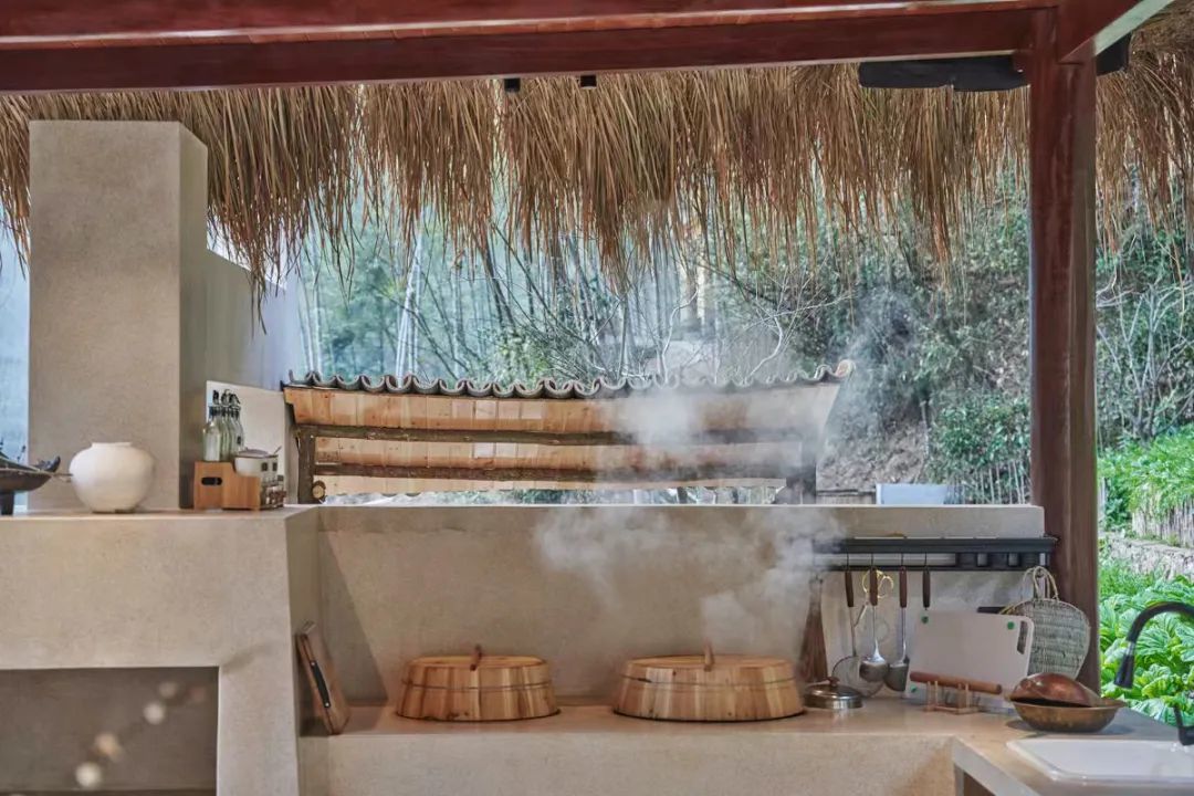 民宿还设有草舍土灶,在袅袅炊烟中做顿柴火饭,吃点阿姨手工做的农家米果,这是独属于乡间的烟火气。