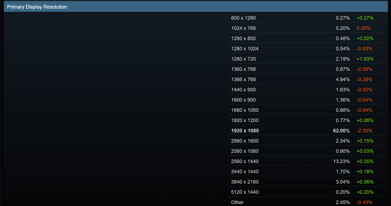 不过1280 x 720的使用率悄然上涨,这也说明已经有不少用户转向了 Steam Deck 或是 ROG Ally 等电竞掌机。4999的售价确实香,如果你能抢到就赚大了。