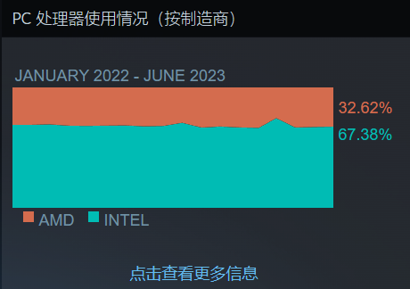 至于市场占有率方面,IU占比高达67.38%,AU仅有32.62%。看来苏妈还要加把劲,让玩家用上更便宜的Intel。