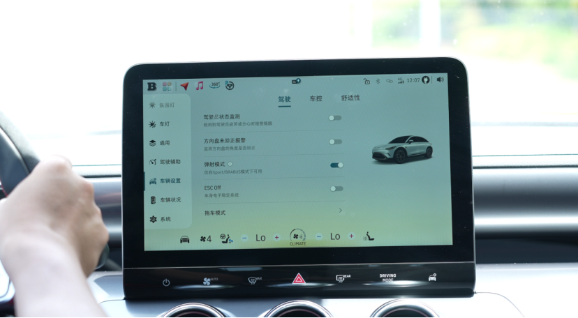 车内没有多余的物理按键,功能全部集中在中间的这块大屏里。通过车机操控,可以对动力模式等多个影响驾驶体验的功能进行精细调节。