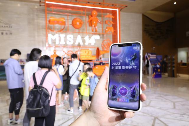走进音乐厅大门,观众仿佛进入快乐宇宙:在穹顶星空之下竖立着一幅橙色的巨型艺术装置,内含太空人、星球、蝉虫、游戏手柄、VR眼镜以及指挥家和各式乐器等模型组合,喻示着人、自然和宇宙的关系。观众不仅可以扫描二维码进入MISA虚拟世界,还可以在“AR互动装置”中,体验各种趣味奇特的视觉效果,沉浸式感受“元宇宙”。