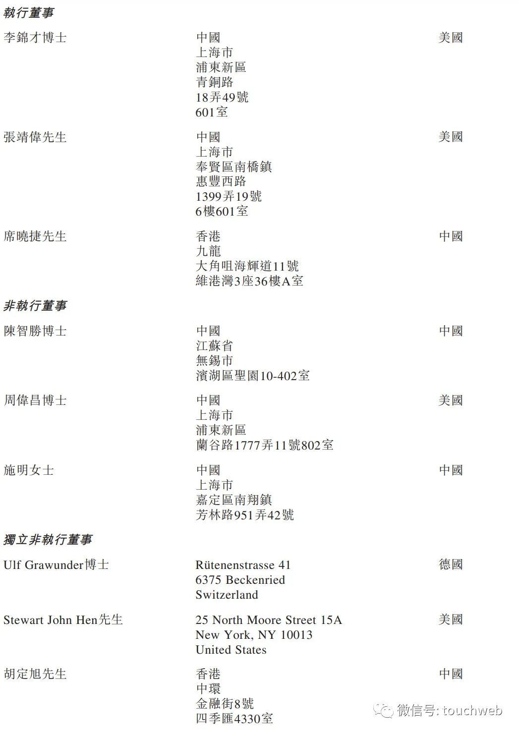 药明合联执行董事分别为李锦才博士、张靖伟、席晓捷;非执行董事分别为陈智胜博士、周伟昌博士、施明女士;独立非执行董事分别为Ulf Grawunder博士、Stewart John Hen、胡定旭。