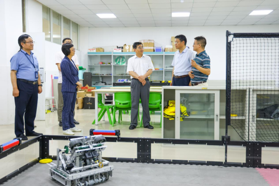 随后,联合调研组一行又来到合肥一中实验楼二楼参观了机器人实验室、创客工作室等,对合肥一中在拔尖人才早期培养方面的实践和探索表示满意,特别是在价值引领、机制贯通、学科融合等方面做的努力表示肯定。于长学表示,合肥一中在早期人才培养、科技创新和拔尖人才培养方面做了大量的、卓有成效的工作,希望合肥一中未来能够有一套可供借鉴推广的方法和举措,为国家多培养人才、早培养人才,培养好人才,为国家战略发展做出更大贡献。