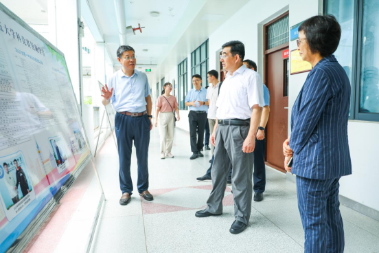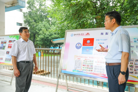 7月7日下午,由教育部基础教育司一级巡视员于长学,教育部基础教育司普通高中教育处处长李静波,教育部基础教育司普通高中教育处干部高彬一行组成的教育部联合调研组莅临合肥一中,开展了“高校和高中联合开展创新人才早期培养工作”主题调研。安徽省教育厅副厅长徐静平,基础教育处处长邵曙光,合肥市教育局党委委员、副局长徐磊陪同调研。合肥一中党委书记、校长封安保,党委委员、副校长张大勇、胡晨等热情接待了到访来宾。