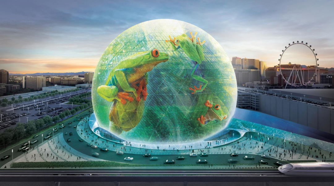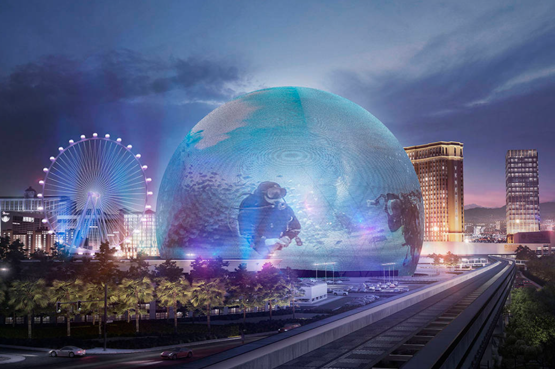 MSG Sphere 的外观呈现出一个巨大的球体,与拉斯维加斯独特的城市景观相得益彰。