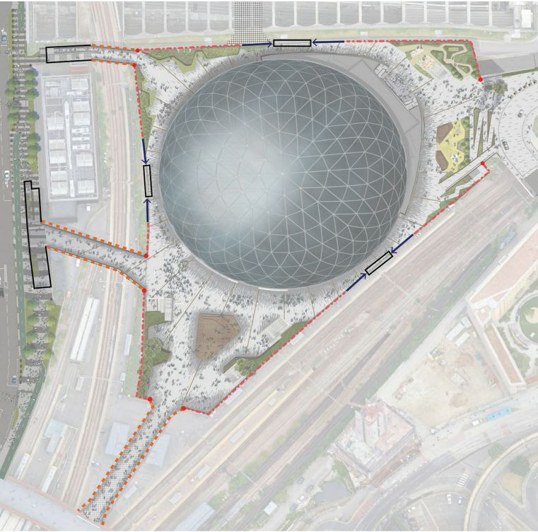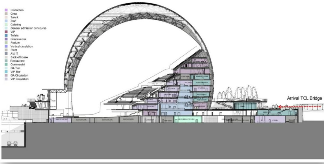 这些措施并非为了阻止球体的移动,而是为了支撑巨大结构的重量,并为活动、更衣室和其他运营设施创造了一个 5,000㎡ 的地下室。
