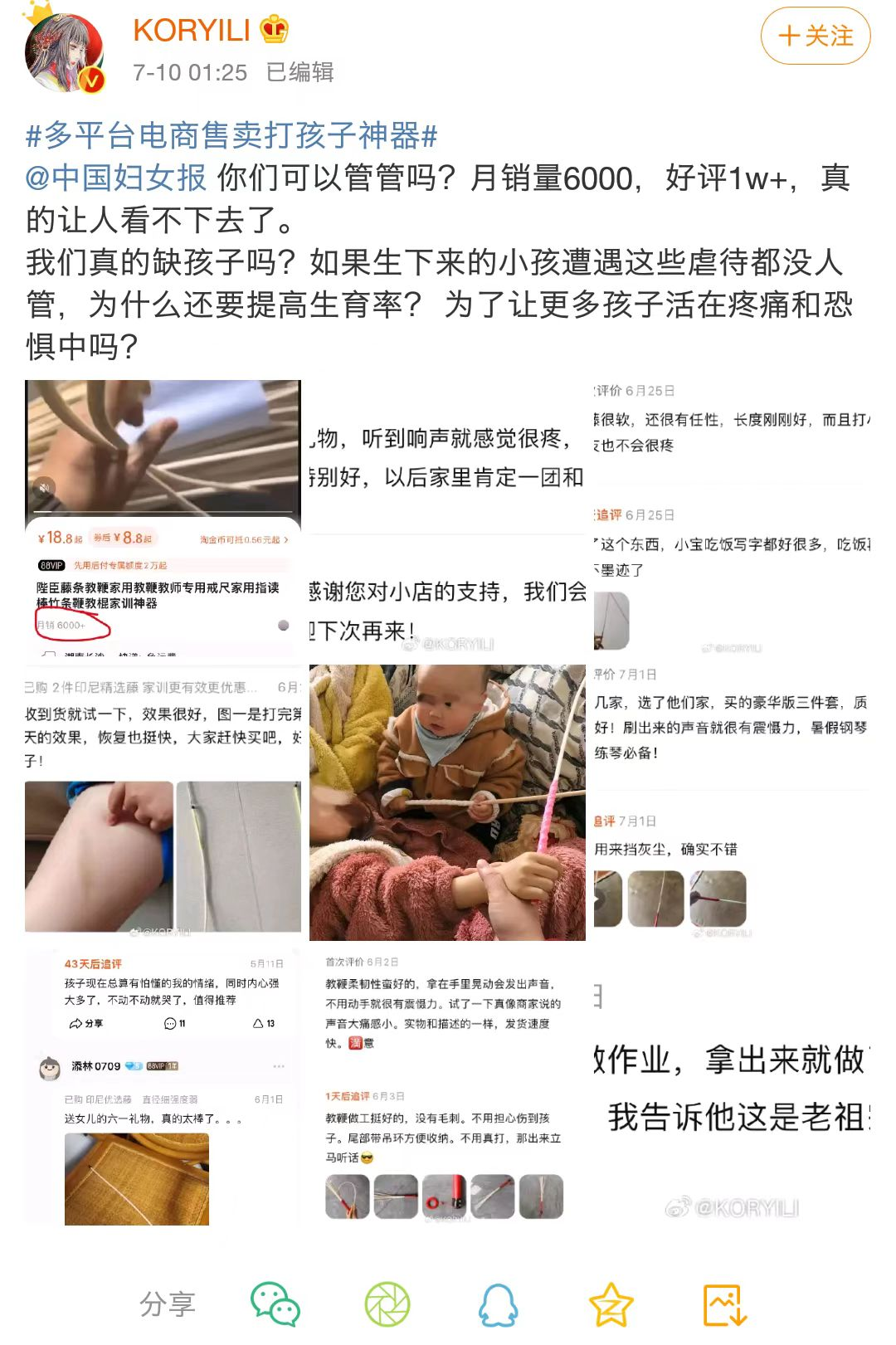 据发现此事博主说,有多个电商平台上都在售卖一款“打孩子神器”的物品。