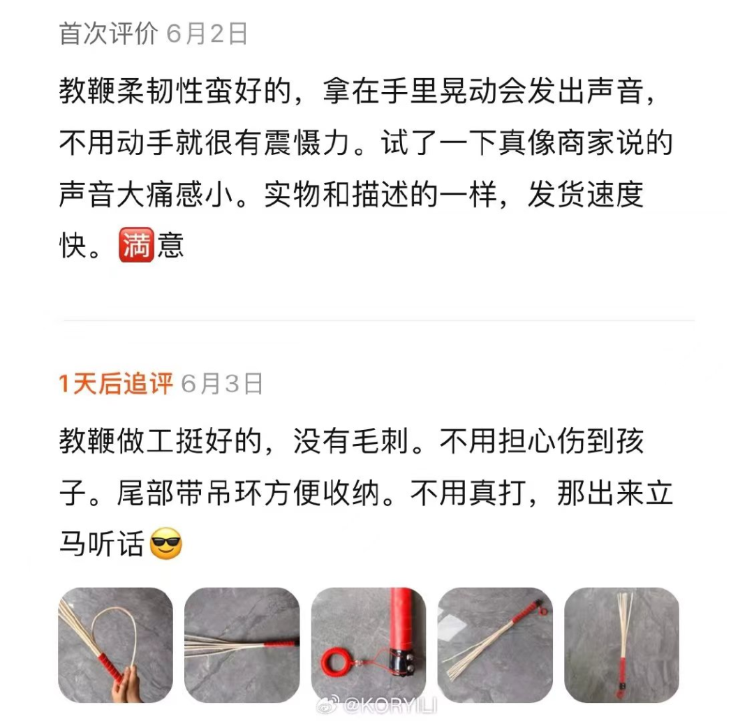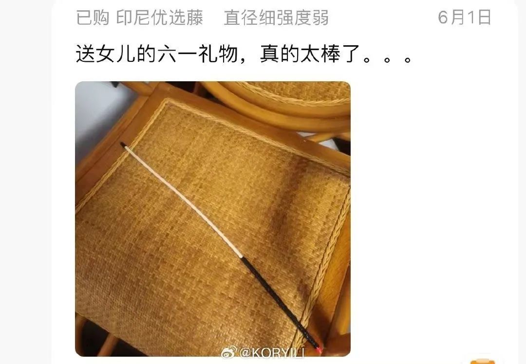 特别是这个把藤条当成六一礼物送给孩子的妈妈。
