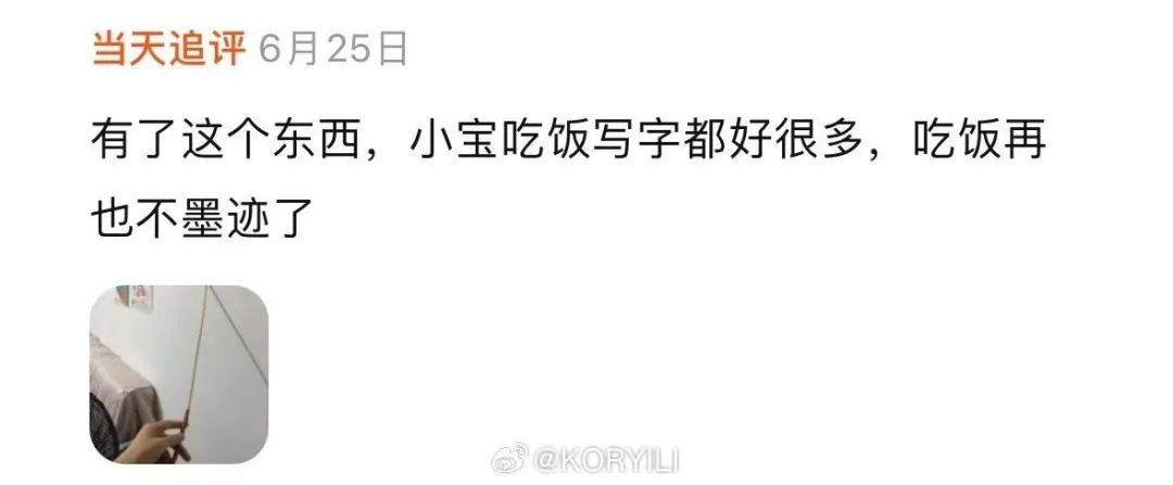 “有了这个东西,小宝吃饭写字都好很多,吃饭再也不墨迹了。”