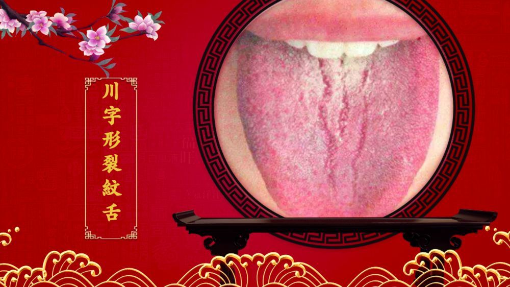 裂纹舌指舌体中部出现丿、川、爻字型的裂痕,多伴有厚腻苔,也可见无苔裂纹舌。