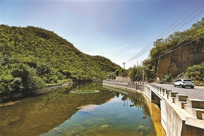 景无水不活。有了一塘清水,塘坝和通向景区的生态沟道相连,形成了完整的生态体系。站在村口公园的凉亭内,借着石级造景打造的沟渠一步一景,置身其间,让人情不自禁想起邓丽君那甜美的歌声:“弯弯的小河,青青的山岗,依偎着小村庄”。