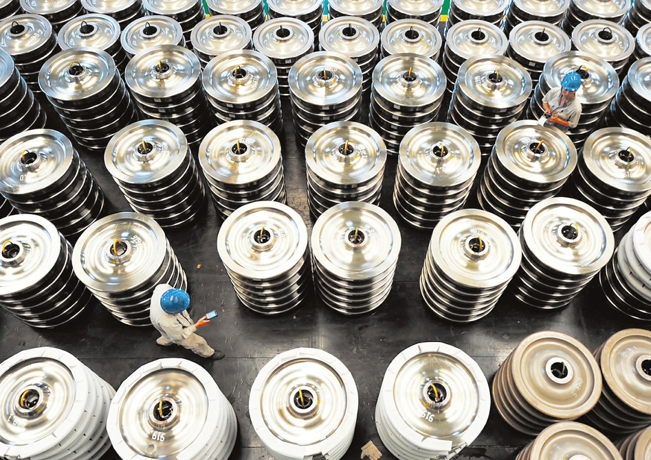 7月11日,太原重工轨道交通设备有限公司,工作人员正对即将出厂发运的高铁车轮进行核检。该公司建立“大生产、大调度、大协调、大管控”生产组织系统,产量较上年增幅明显,车轮产能利用率达到90%,为完成全年目标任务打下坚实基础。(李兆民 摄)
