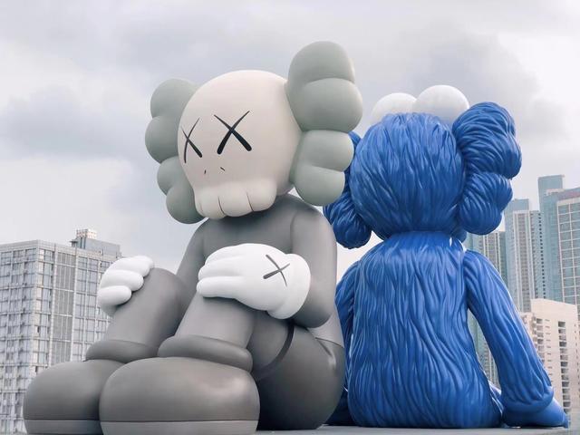 那么相较于正儿八经的“老一辈”古玩,可跻身艺术收藏的潮玩究竟有哪些?玩偶总动员便是一个相当典型的故事。故事的开端照例是这样的:很久以前,在遥远的地方出现了两只类熊形生物,一只叫BE@RBRICK,另一只叫KAWS,他们五彩斑斓、变化多端,常以不同的混搭样貌示人,迅速捕获了全球年轻人的心。当然,从童话回到现实,这个故事其实也就发生在千禧年之后,热点事件包括KAWS曾于2018年在长沙国金中心楼顶矗立起两座8米高的巨型公仔雕塑,蓝白双色外加标志性的“XX眼”,成就了一处火至今日的网红打卡地。之后的故事国人便愈加熟悉:本土品牌“泡泡玛特”几乎以一己之力,将手办、盲盒等潮玩文化进行了广泛的市场普及,大有与KAWS等舶来品牌齐头并进之势。