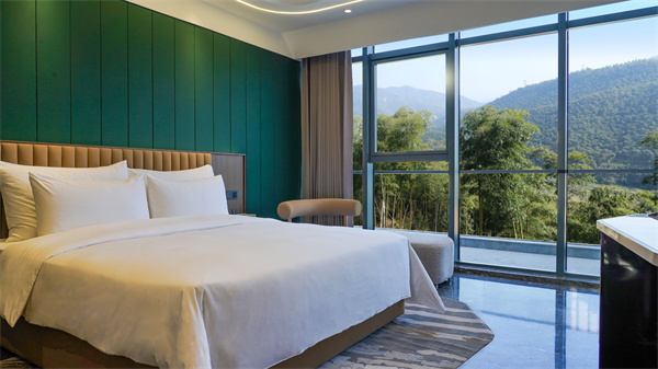 “回归自然”的理念,更考验对匠心品质的把握。全新推出的半山隐竹酒店——居半山,隐于竹,是云上草原度假村高端野奢系列的又一力作,整体倚靠山势而建,所有套房都呈现了“推窗即见景”的效果,可享受超270°山野全景。