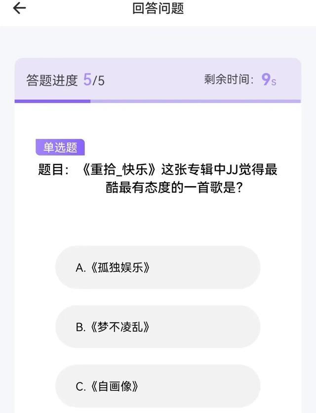 作为林俊杰演唱会官方购票平台之一,在JJ20 app上,观众需要答对5道题目,才有资格进入抢票页面,答错则会冻结30秒不能答题。
