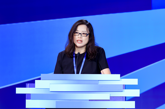 图为人民日报社新媒体中心副主任王恬发表主题演讲。
