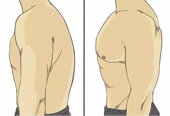 肩内旋时,由于胸廓整体前倾,胸大肌缩短,限制了锁骨的上抬及向后转动;这样一来:在肩部内旋的情况下,如果你硬要进行肩部外展,就会导致肩峰下的肌腱和韧带的夹挤和摩擦!长久以来肩膀痛就来了!