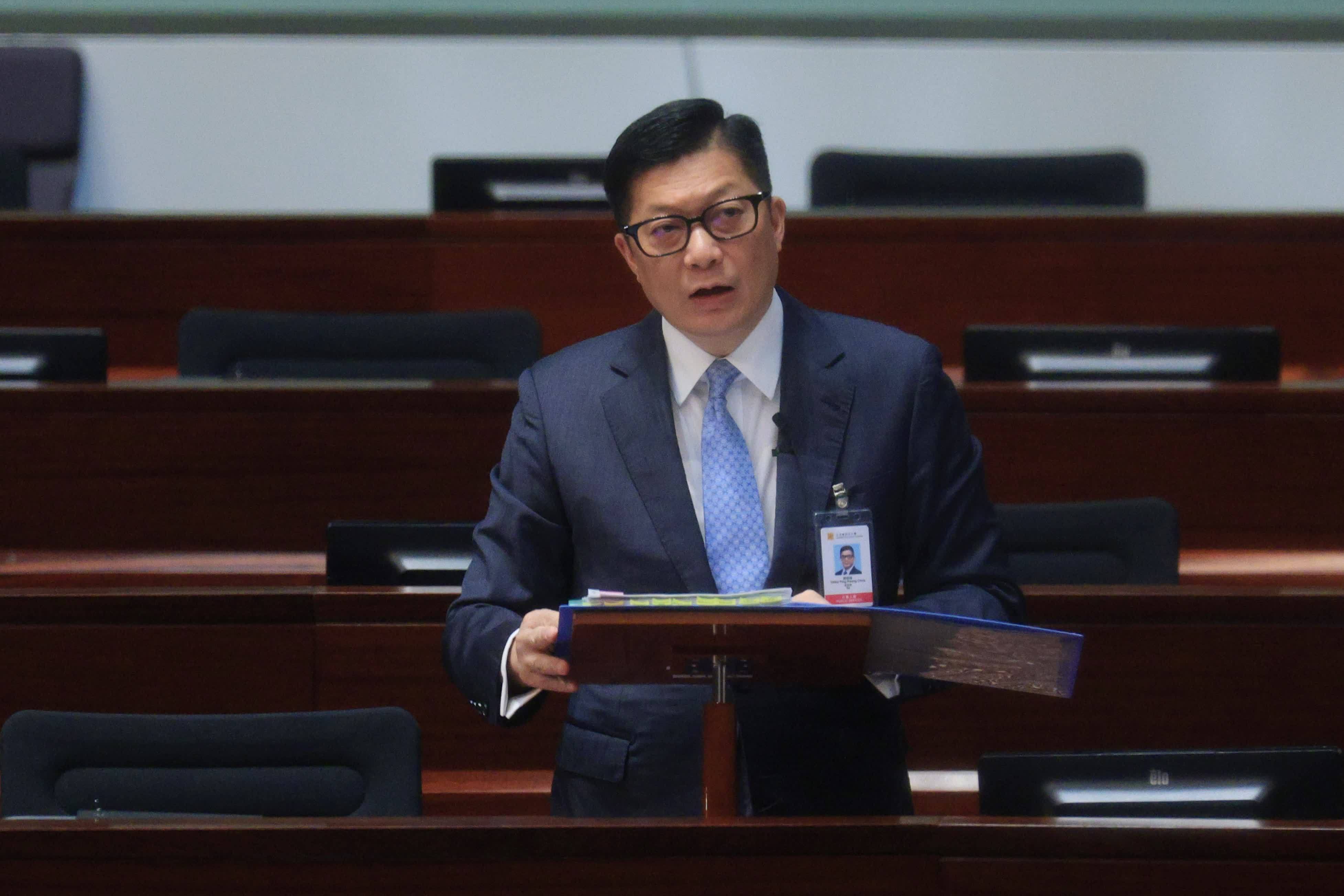 保安局局长邓炳强上周答复立法会提问时,呼吁市民如预视或怀疑罪案发生,应及早通知警方,见疑即报。(香港中通社资料图片)
