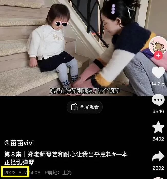 还有人说,她的抖音虽然持续在更新,但看着都是存货。比如6月7号发布的这条,一家人都穿着厚厚实实的毛衣棉服,相当不合理。