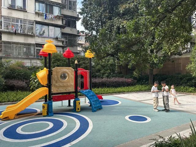 下棋的问题解决了,羽毛球的噪音问题怎么办?恰好当时有居民提议,增设一块场地供小朋友休闲娱乐。街道和居委会深思熟虑后,决定将打羽毛球的那块空地改造成儿童游乐区,安置一批新的儿童游乐设施,让社区全龄段的居民都能享受到这座口袋公园带来的便利。随后,又在地上铺上了新的地砖,安装了新的路灯,防止小朋友在游玩过程中跌倒,也为过往行人提供了方便。