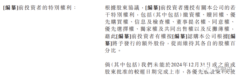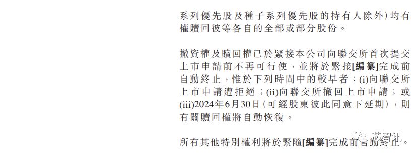 速腾聚创与投资人之间也存在有对赌协议。如果(其中包括)速腾聚创未能于2024年12月31日或之前或股东批淮的较迟日期完成上市,各优先股股东(天使系列优先股及种子系列优先股的持有人除外)均有权赎回彼等各自的全部或部分股份。