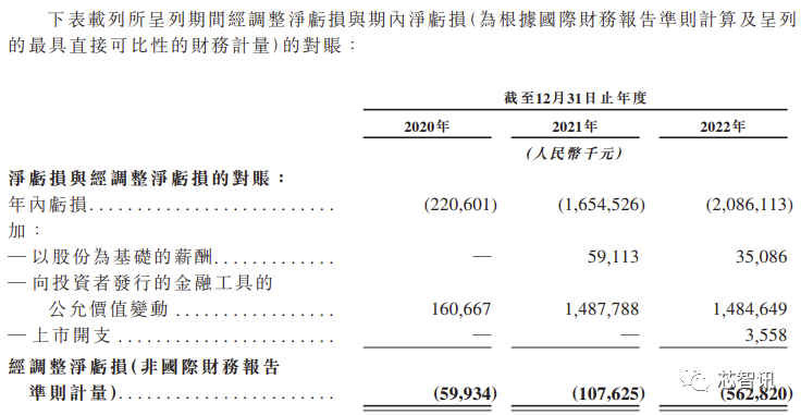 如果剔除金融工具公允价值变动及上市开支调整等因素影响,报告期内,经调整净亏损额分别为5990万元、10760万元和56280万元,虽然亏损额相对收窄,但是亏损规模依然是高速增长。
