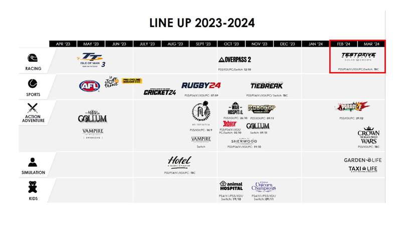 另外,发行商Nacon和开发商KT Racing近期还宣布,他们将于7月12日举办一场“无限试驾”连接活动,届时将展示《无限试驾:太阳王冠》的首个实机画面,考虑到之前许多其他游戏开发商的跳票策略,《太阳王冠》很可能会同时发布实机演示和跳票消息,以“胡萝卜和大棒”的“骚操作”缓解玩家的不满。