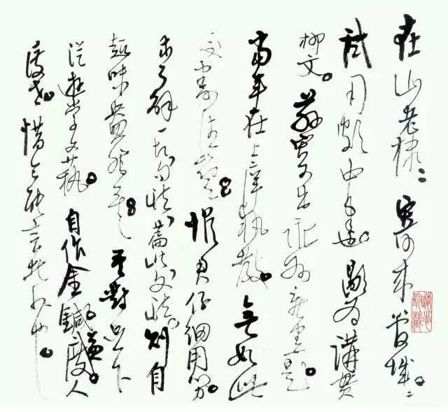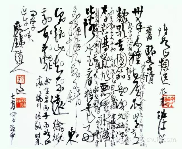 在书法实践上,他巧妙地将章草、今草、狂草熔于一炉,既有高古的品格,又有奔腾跌宕之气势,尤以线条的劲幢、结字的紧密见长。看他的草书,才真正感觉到那笔锋在纸上奔突的力度。高二适学问素养极高,作品往往洋溢出浓郁的书卷气。文章、书法极受林散之先生推重。