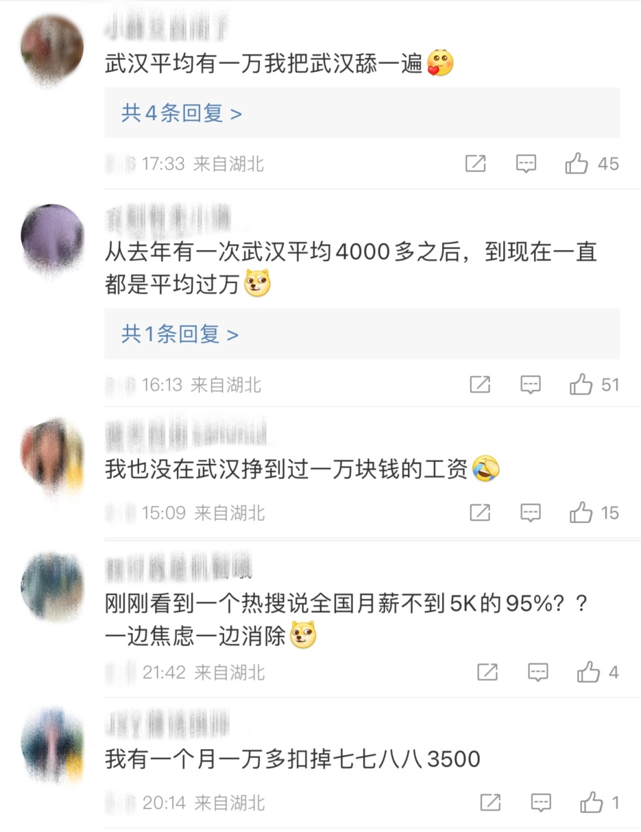 武汉平均薪酬过万,不少网友表示,自己的工资拖了后腿。