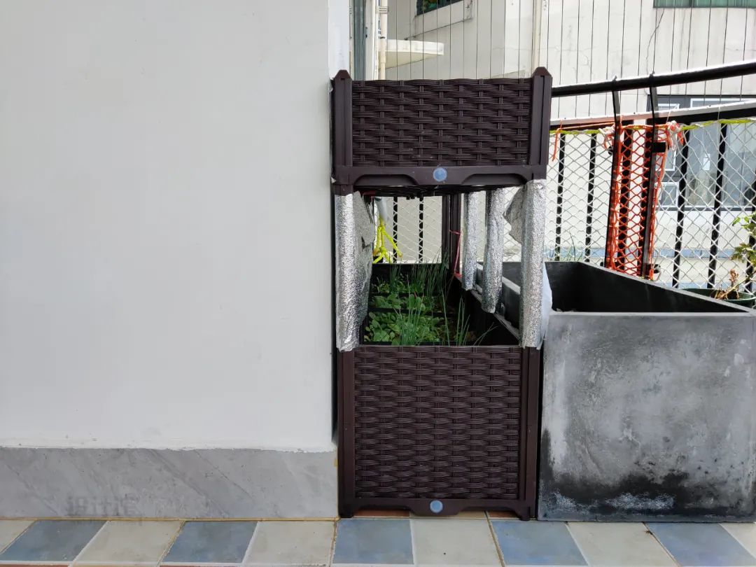 ▲阳台种菜,浇水会有泥土溅起,容易弄脏墙面,墙面建议贴砖。