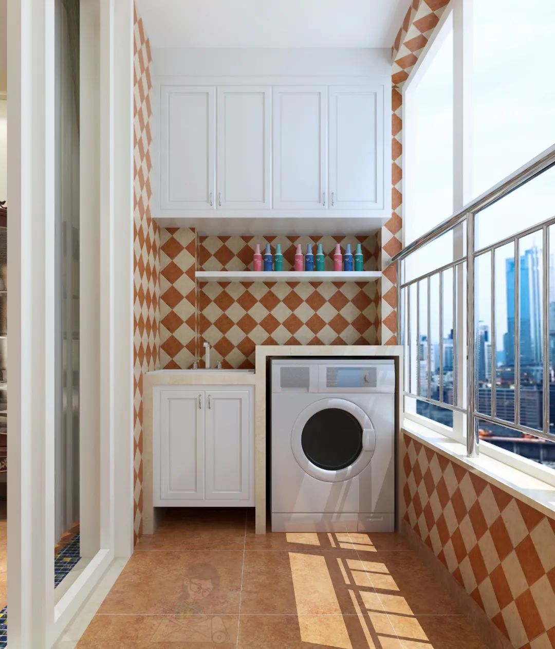 比如洗衣机、洗手台、水龙头与拖把池的安装墙面,这些区域经常用水、容易潮湿,建议要贴瓷砖,一方面是瓷砖墙面好打理,另一方面是瓷砖墙面不容易出现渗透漏水的情况。