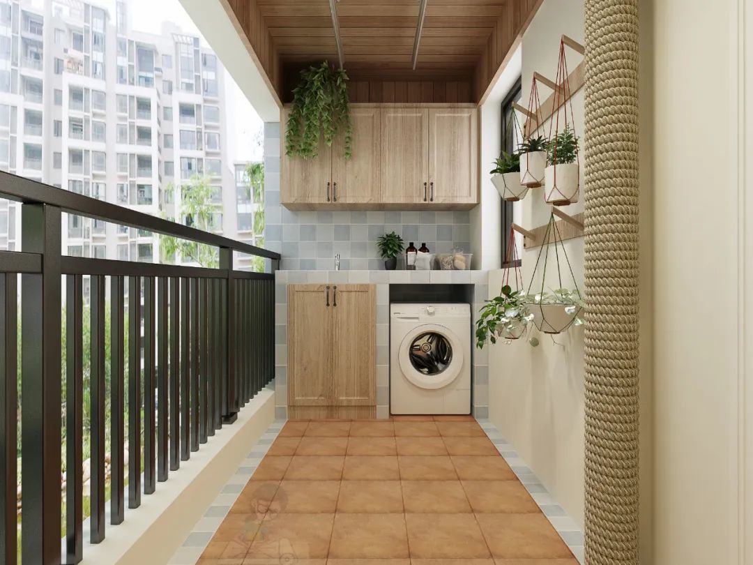阳台墙面建议贴砖的情况——比如在阳台装拖把池、种花种菜的情况,墙面很容易被弄脏,建议就要贴砖,比较方便打理清洁。