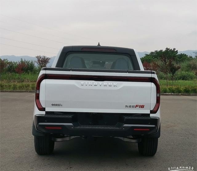 新车造型立体饱满,前脸采用分层式长条格栅设计,最上方采用熏黑设计,并与两侧大灯相连,营造出了贯穿式设计风格,有效拉宽了人们的横向视觉感受。车身侧面带有宽大轮眉,轮毂造型别致。车尾同样颇具亮点,圆弧形贯穿式灯带设计增添了科技感,尾门上带有象征中国重汽的“sinotruk”标识,下方还有先锋官F16标牌,意味着该车或将以此命名。