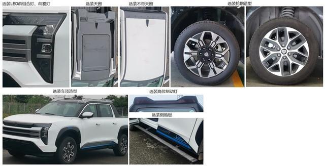 在选装方面,新车可选装LED前组合灯、前雾灯、天窗、轮辋造型、车顶造型、高位制动灯、侧踏板,选装ETC车载装置,选装不带天窗。该车还配备汽车事件数据记录系统(EDR)。
