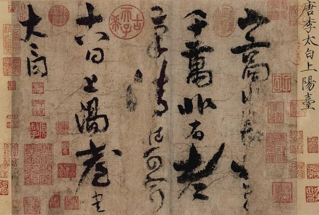 在唐代,除了诗歌,书法也得到了极大的发展。作为中国传统文化的精粹,书法与诗歌一直是相伴而行,古代文人讲究诗书结合。李白的书法传世作品只有《上阳台帖》,内容是李白书自咏四言诗,写这首诗的原由是李白带着杜甫与高适到王屋山,探访司马承祯,却未料到司马承祯已故去,于是他挥笔写下这首诗。