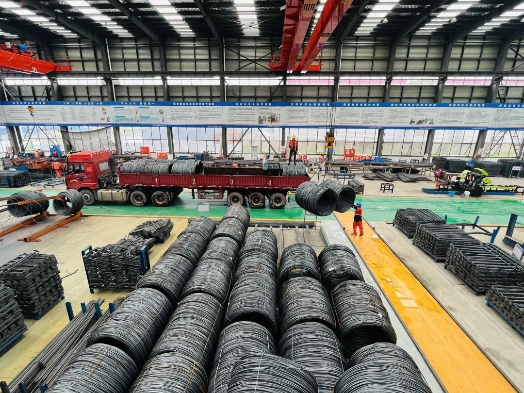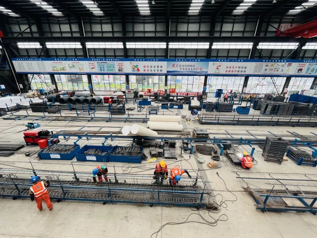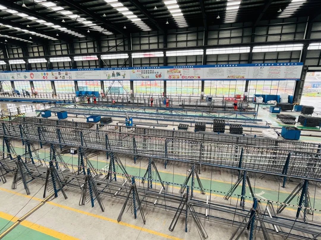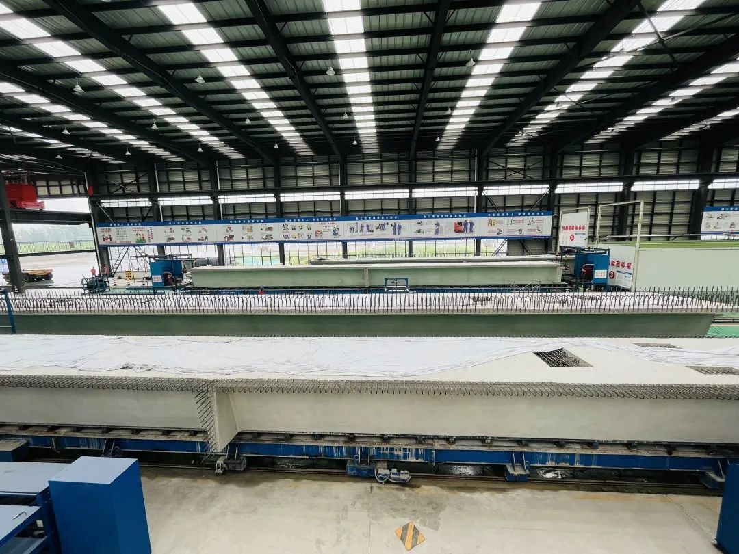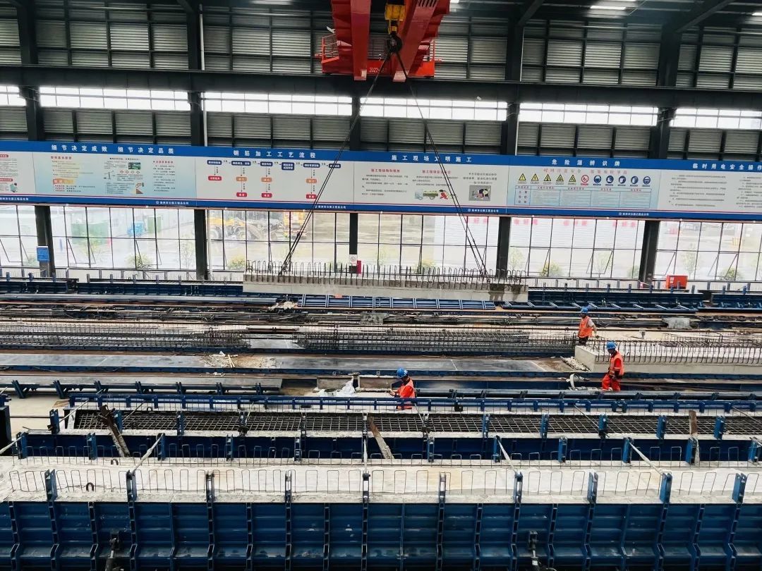 “该项目从去年6月开始建设,到12月整个厂区建设完成;今年2月人员陆续进场,主要生产箱梁和板梁。截至6月底,4条箱梁生产线,每天可生产4片箱梁,1个月大概完成110片到120片箱梁生产任务;板梁车间6条生产线,每天可生产不同型号的板梁10片。”江苏徐路建筑工程有限公司副经理姚金才介绍。
