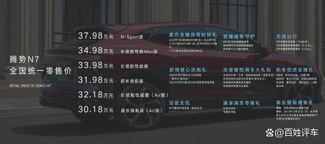 最后,腾势汽车宣布,汽博会期间N7大定,更有超值好礼可享意向金臻选限时好礼、终身愉悦大礼包、购车优选金融礼、邀请好友共享礼等多重专属权益。