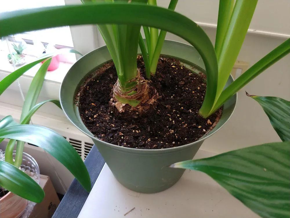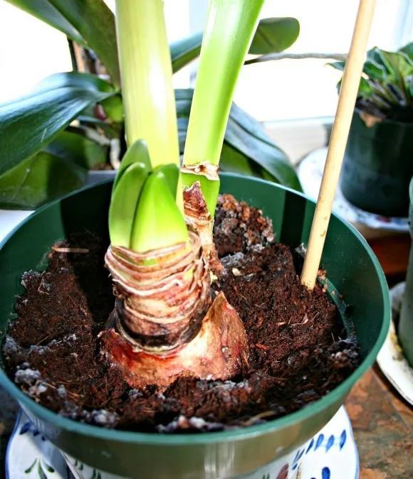 在后期养护的过程中,朱顶红底部的种球还会不断冒出一些侧芽,这些就是我们平常所说的子球,子球长得稍微大一点,就可以直接带土移栽。一般都是在春暖后,花期结束之后进行换盆,换盆的时候就可以将多余的朱顶红子球分出来,重新栽种。