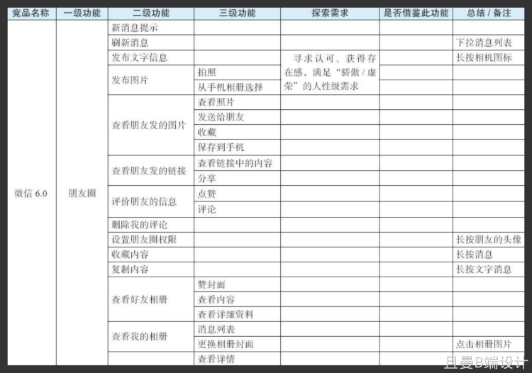 如果某一列功能元素所有竞品都打了勾,则说明该功能元素竞品都有,是个普遍元素,优先级可能较高。