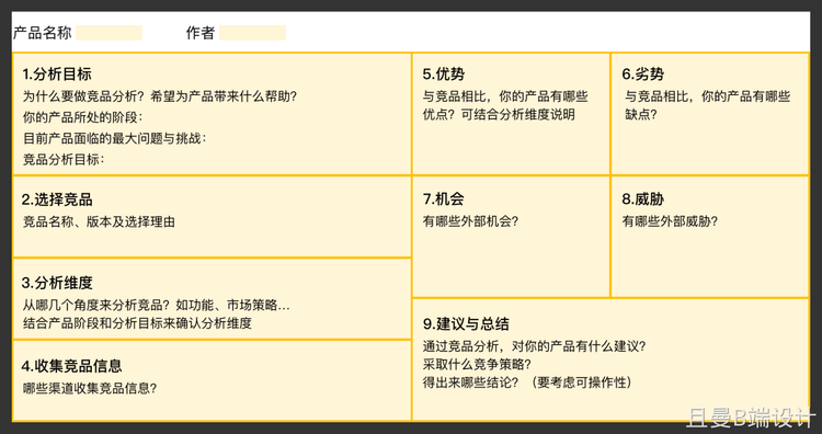 竞品画布是一个简易的竞品分析模板,可以用一页纸包含了竞品分析的 9 大问题。