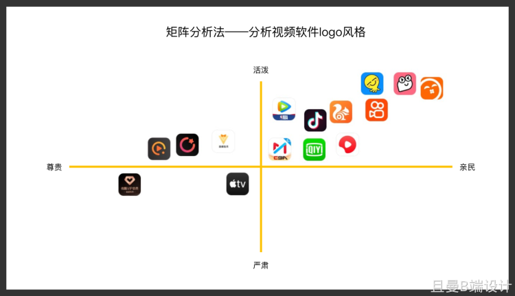 设计师还可以用矩阵分析法分析竞品的视觉风格,以辅助定位自身产品的视觉风格
