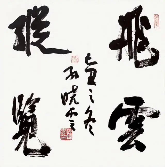 按他的说法,所谓的“横扫”笔法就如同米芾的“刷字”法。如果看过他的写字视频会发现,他写字有一种拿着扫帚扫落叶一样的感觉。这是他书法的一大特色,张铁林也经常用这种笔法。有人觉得很美,但也有不少人不喜欢这种毛笔在纸上擦出来的字。
