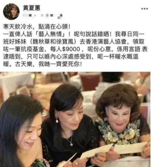 还发起“香港电影工作者疫境支援计划”,给部分年迈或退休的艺人每人发放9000港元援助金。