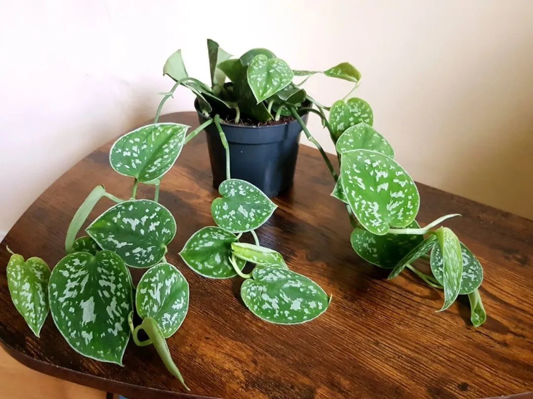 小叶银斑葛是比较小众的观叶植物,它的叶子有银白色的斑纹,它也分小叶和大叶两个不同的品种,分别就是小叶银星绿萝,学名:Scindapsus pictus Argyraeus',(英文名:Pothos Satin) 和大叶银斑葛,学名:Scindapsus Pictus Exotica。