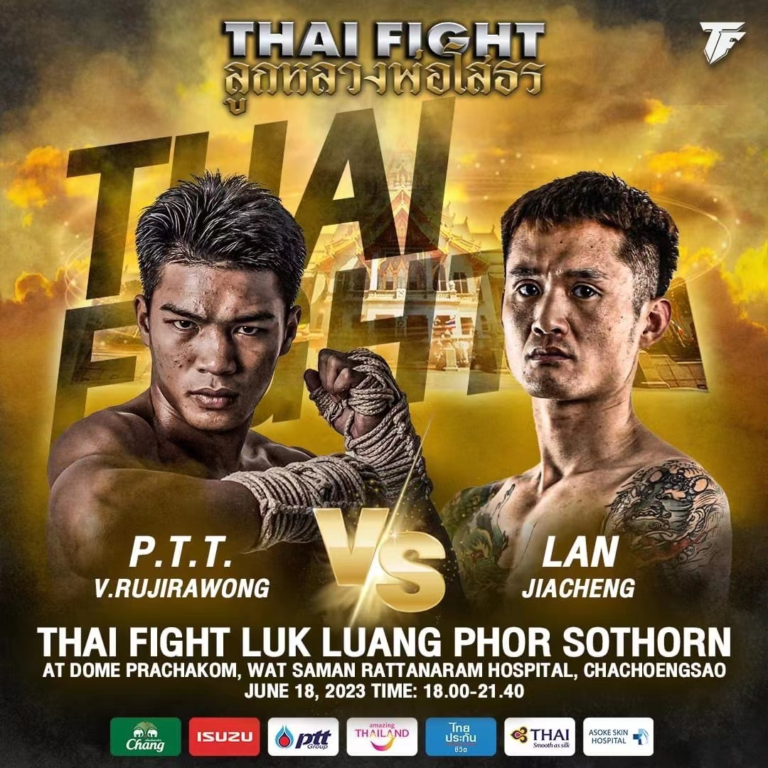 北京时间6月18日,来自中国的兰家承登上了泰之战的擂台,在当晚的联合主赛中出战,在麻绳泰拳的规则下迎战有着上百场胜利的泰国高手Por Tor Thor Petchrungruang。